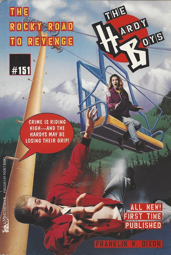 The final disappointment is that Rocky Road plays the alien angle too straight. This is a Hardy Boys book, not a serious novel, and no one should expect a Hardy Boys book to be rooted in strict reality. I wanted a winking acknowledgement that the orange light or the mysterious night hobo who always wore sunglasses had something alien about them; I wanted Alex Trebek as a man in black. Instead, Rocky Road drops both the light and drifter, referencing the light on the final page in the same way the original Disappearing Floor (#19) picked up the mystery of its beginning pages, ending with the boys promising to find Harry Tanwick.