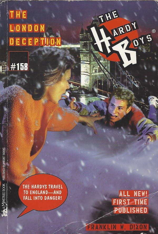Oh, that’s right. They just went to Italy in the previous book, The Lure of the Italian Treasure. Unlike last time, The London Deception describes why they’ve been allowed to head abroad without supervision: They’re visiting Londoner Chris Paul, who stayed with the Hardys while he was an exchange student at Bayport High School the previous year. Why haven’t we seen or heard about Chris before? Because Chris came to Bayport last year, and no Hardy Boys books are set last year. Duh!